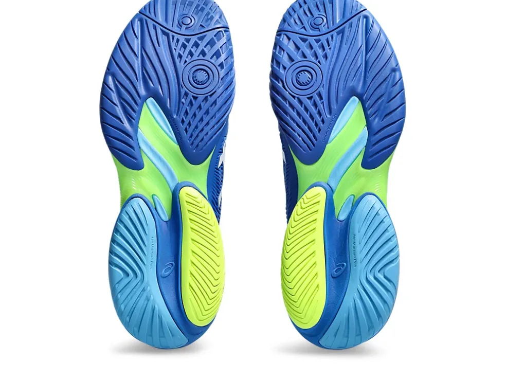 Novak heeft een ‘zero-step shot’. Dat betekent dat hij zijn racket swingt tijdens het landen. We hebben de contactzone van de buitenzool vergroot, zodat je stabieler landt en je lichaam minder belast wordt. Daardoor heb je meer energie voor een krachtige swing.