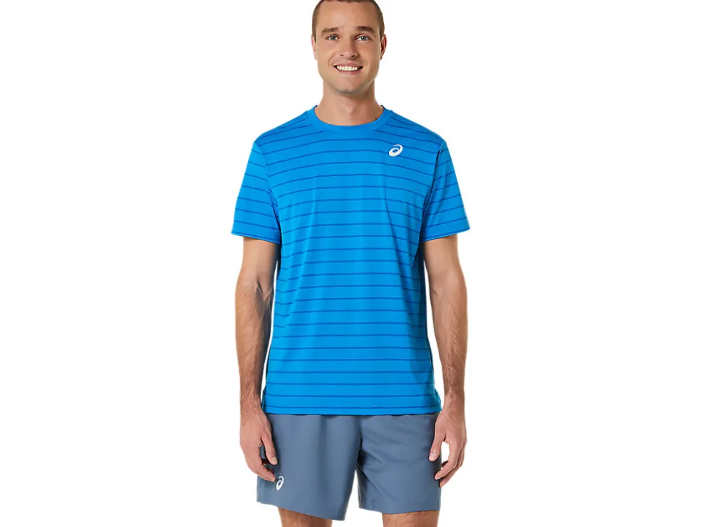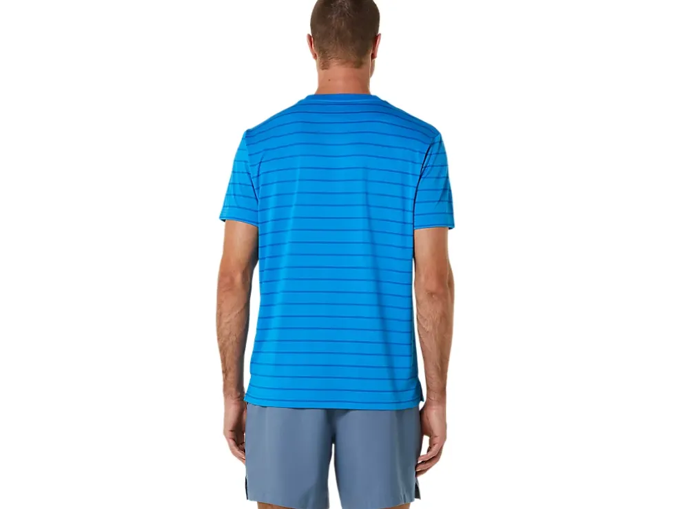 De COURT STRIPE SHORT SLEEVE TOP heeft vochtregulerende eigenschappen die verkoelend werken.