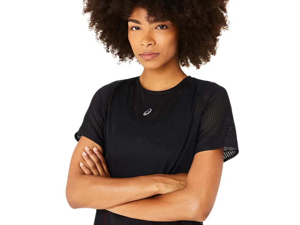 Blijf luchtig op warme dagen met de ASICS pinnacle METARUN SHORT SLEEVE TOP met korte mouwen.
