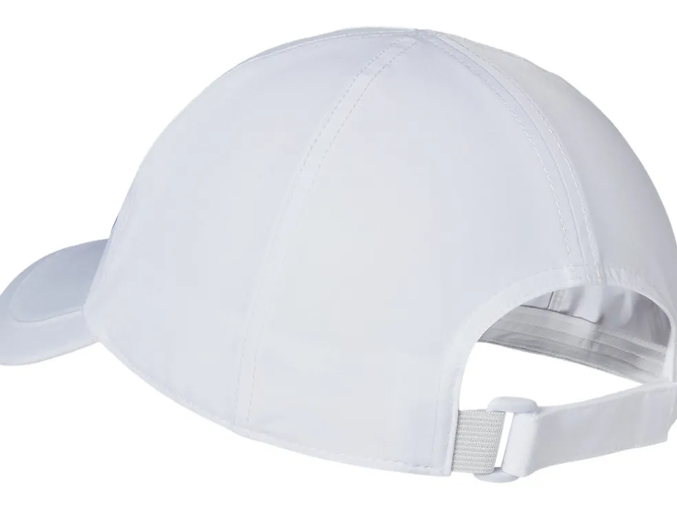 Deze pet is ontworpen met een gebogen klep die je gezicht beschermt tegen de zon. De hoed heeft een verstelbare riem aan de achterkant en goede vochtregulerend eigenschappen om je droog te houden op de baan.