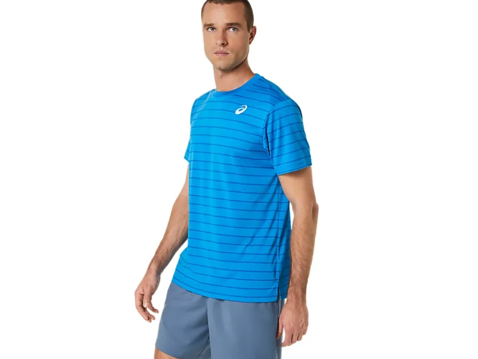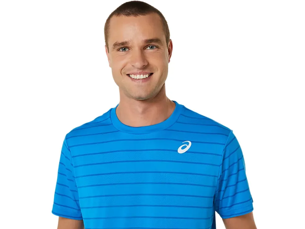 De COURT STRIPE SHORT SLEEVE TOP heeft vochtregulerende eigenschappen die verkoelend werken.