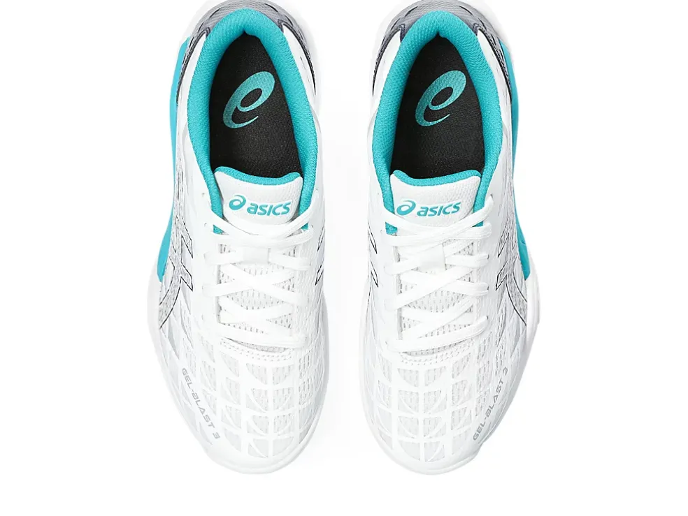 De GEL-BLAST™ 3 GS-schoen (basisschool) is ontworpen om atleten geavanceerde stabiliteit te bieden zodat ze dynamisch aanvallende en verdedigende bewegingen kunnen maken.
