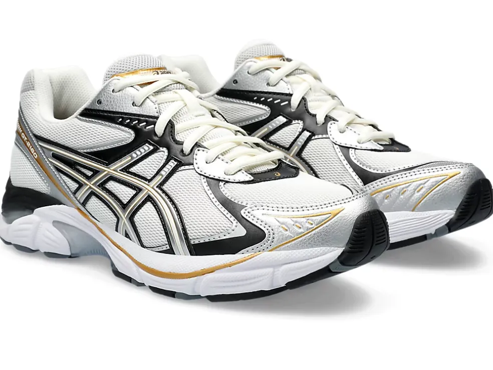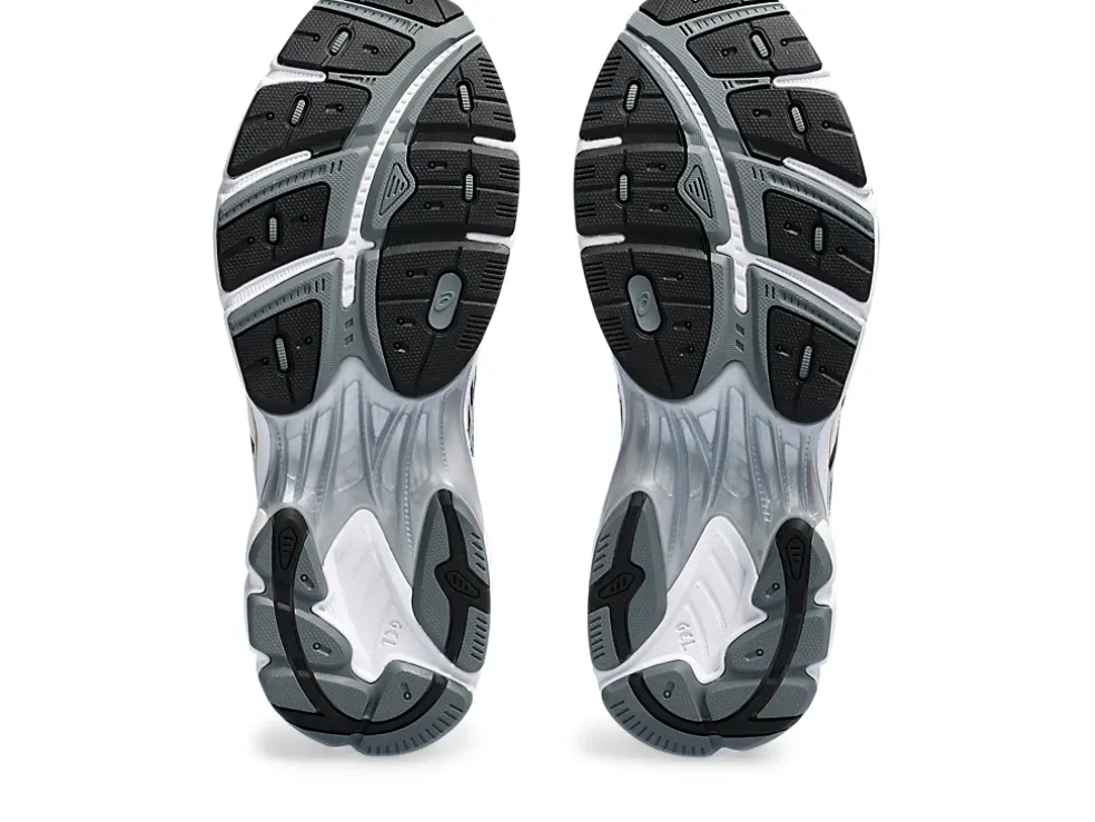 Maar ook andere invloedrijke details uit de jaren 2010 zoals een gesegmenteerde tussenzool en inzetstukken met GEL technologie. Dit levert een schoen op met industriële look én geavanceerde demping.