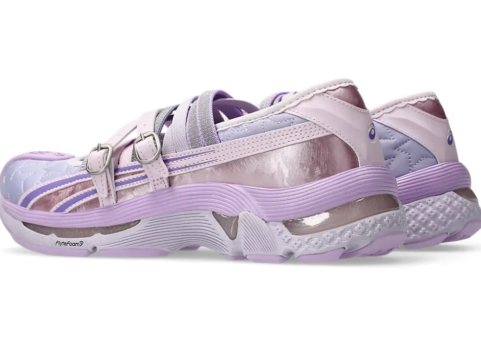 >The GEL-LOKROS™ sneaker was designed by Kiko Kostadinov and Heaven by Marc Jacobs.Inspired Mary Jane shoes, this sneaker’s upper is offset with star-shaped embroidery details that form a quilted pattern. Meanwhile, the fastening system is complemented with glistening straps for a metallic finish.The shoe’s tooling references the GEL-KIRIL™ sneaker’s design. It’s layered with FLYTEFOAM™ PROPEL cushioning and GEL™ technology for advanced impact absorption. Lastly, the elongated outsole is met with a floral traction pattern that wraps over the toebox for an aero-dynamic look.